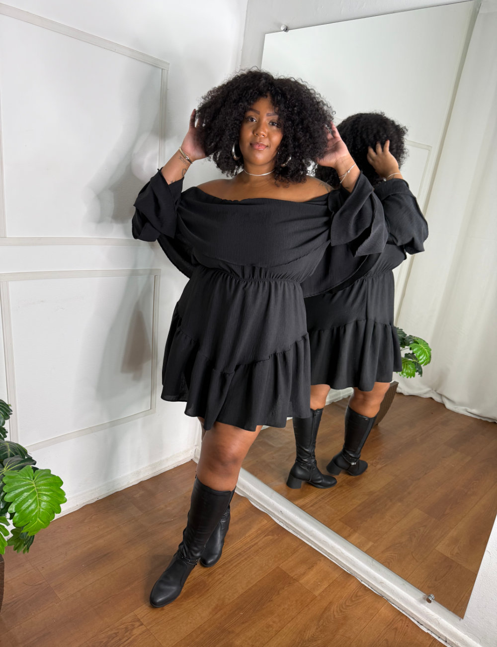 O Vestido Ciganinha Plus Size Manga Longa é aquela peça-desejo que une charme e versatilidade com uma modelagem feita para valorizar todos os tipos de curvas. Com decote ombro a ombro e mangas longas, ele entrega feminilidade na medida certa — ideal para ocasiões casuais ou mais arrumadas.