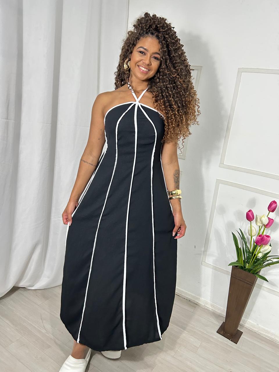 Vestido com lista branca